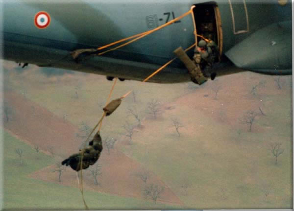 Sortie du Transall C160, la gaine EL8 précède le para