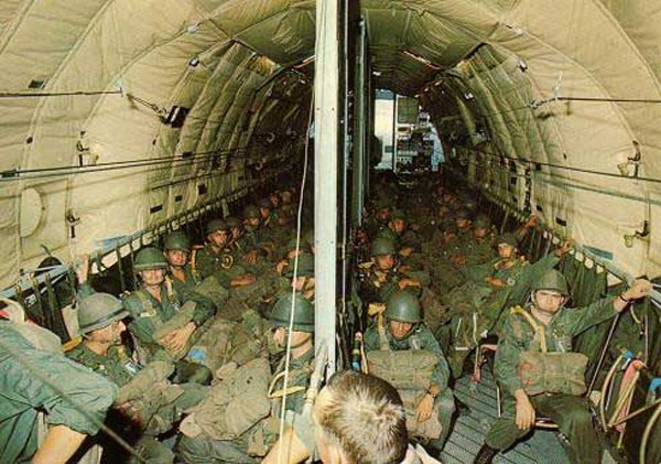 Dans la soute du Transall C160
